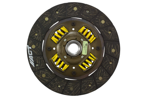 3000407 is a performance street disc and the most popular disc purchased. It features premium organic materials with high copper content for better heat transfer. Performance street discs allow for quicker shifting and smooth engagement. These discs feature a reduced marcel for faster shift action to complement ACT pressure plates. ACT spring-centered assemblies use bushings and cone springs similar to factory clutch discs. This creates frictional dampening, which improves clutch life and reduces noise. Quiet operation with increased strength and reliability.