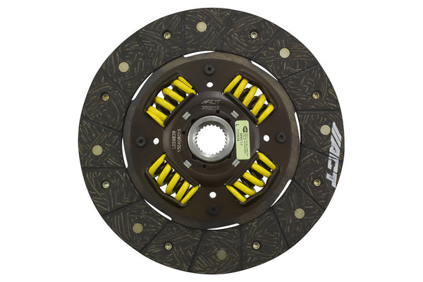 3000110 is a performance street disc and the most popular disc purchased. It features premium organic materials with high copper content for better heat transfer. Performance street discs allow for quicker shifting and smooth engagement. These discs feature a reduced marcel for faster shift action to complement ACT pressure plates. ACT spring-centered assemblies use bushings and cone springs similar to factory clutch discs. This creates frictional dampening, which improves clutch life and reduces noise. Quiet operation with increased strength and reliability.