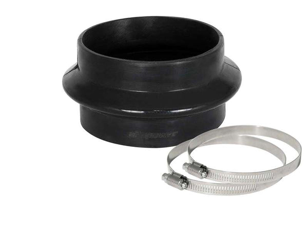 The high temperature injection molded silicone hump coupler is designed to connect to a 4"OD tube and is 3" long. Standard stainless steel worm-gear #060 clamps provides tight connections, durability, and is corrosion resistant for industrial, commercial, truck, off-road, and racing applications.
