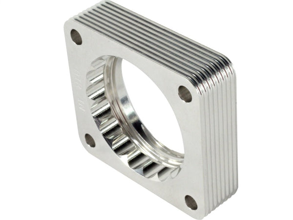 Silver Bullet throttle body spacers create turbulence in the air flow at the point just prior entry into the engine increasing horsepower, torque and improving throttle response and fuel efficiency. Silver Bullet throttle body spacers are constructed out of durable T-6061 billet aluminum and using a unique serrated/helix entry to create turbulence at the manifold while eliminating the annoying whistle found in other helix only throttle spacers.