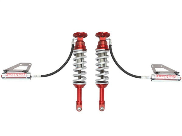 aFe Control introduces these Sway-A-Way High Performance replacement Coilovers for the 2010-2014 Ford F-150 SVT Raptor. These giant 3" diameter Coilovers feature all the same race winning engineering and components that have 20+ years of testing into a specifically designed kit that will bolt directly into your daily driven vehicle. This kit offers remote reservoirs and better off road damping curves without sacrificing any on road comfort or handling. These front Coilovers are 100% designed and built in the USA that feature bright zinc plated steel cylinder bodies and CNC machined aluminum components. The kit comes pre-set for 2"-2.5" of lift. Also included is a spanner wrench for you to adjust your ride height to find your perfect blend of performance and style. This aFe Control Suspension product is designed and engineered in our Corona, California facility.