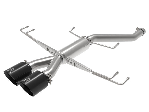 2-1/2" 304 Stainless Steel Construction: This axle-back exhaust system is constructed of 2-1/2" mandrel-bent 304 stainless steel tubing for maximum strength and durability.Dual 4-1/2" Diameter Black Exhaust Tips: Finishing off this exhaust system are dual 4-1/2" diameter black 304 stainless steel clamp-on exhaust tips. The tips features a laser etched Takeda logo for a unique style.Installation: Requires cutting factory exhaust. Utilizing factory style hangers this system mounts directly to factory mounting locations for a hassle-free installation.Integrated Mitered Merge Collector: A mitered merge collector is used to decrease turbulence and increase exhaust velocity resulting in increased horsepower, torque and improved throttle response.Computer-Aided Design: Utilizing state-of-the-art computer-aided design technology, this exhaust system is designed for custom, high tolerance factory fitment.MIG-Welded: 100% MIG-Welded for race-proven strength and durability.Note: Some cutting is required, see instruction sheet for further information.Emissions Disclaimer: This product does not require a CARB EO#.aFe POWER exhaust systems are engineered and manufactured in our Corona, California facility.