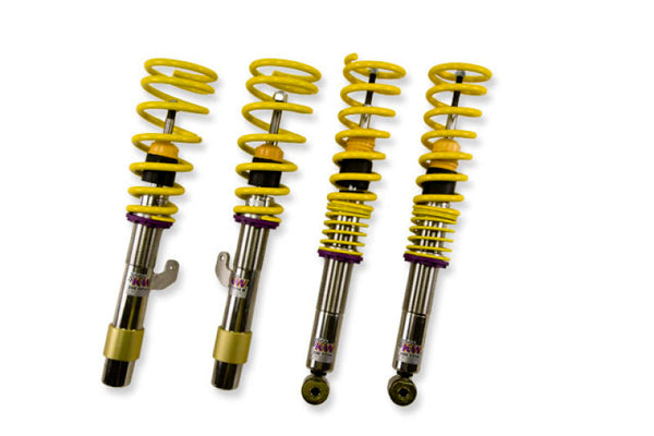 Is your factory sport suspension too firm? Do you want a sporty look and driving dynamics without having to compromise comfort? KW V2 comfort coilovers take the already stellar ride and reputation of KW suspensions coilover systems to the next level of comfort. Designed specifically to maximize comfort KW V2 Comfort coilovers provide a subtle lowering with adjustable ride height and rebound damping adjustability allowing the handling or the comfort to be individually tailored as desired via the integrated rebound adjustment knobs. KW V2 Comfort coilovers offer the perfect compromise of driving dynamics and ride comfort. With the KW V2 Comfort coilover kit, your comfort-oriented driving pleasure is the focus. That's why our test engineers evaluate the setups on numerous highways and country roads with various road surface types. The KW V2 Comfort coilover kits are suitable for all drivers who want to combine the joy of a decent lowering with driving comfort. With the 16-click adjustable rebound damping (TVR-A-technology), you can tune the KW dampers on the KW V2 Comfort coilover kits to make it more comfortable or sportier. The two-stage, patented TVR-A (Twin Valve Rebound - Adjustable) technology enables a small volume of oil to flow through an adjustable, conically shaped, low-speed bypass during low damper speeds, while in the case of higher damper speeds, the main rebound stage valve opens allowing a larger volume of oil to flow. This provides a big improvement in terms of ride comfort without influencing the safety-relevant high-speed range. There are 16 precise clicks available for individual settings, so you can choose between more comfort or more body control. The KW V2 Comfort coilovers, made using INOX-LINE stainless steel technology, enables a vehicle-specific lowering within the tested adjustment range of 10 to 40 mm.
